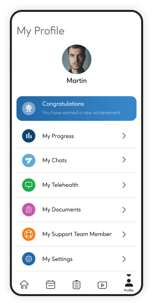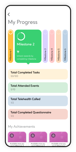 • Patients gain insights into their progress through milestones and visualizations, promoting a sense of accomplishment.