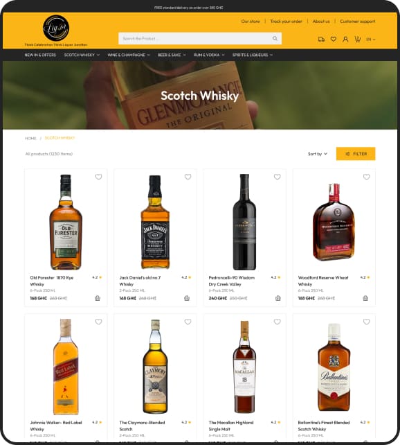 Our website offers a vast collection of liquor products that you can explore effortlessly. With our intuitive search filters, you can find specific products quickly and efficiently by category, sub-category, brand or keywords.