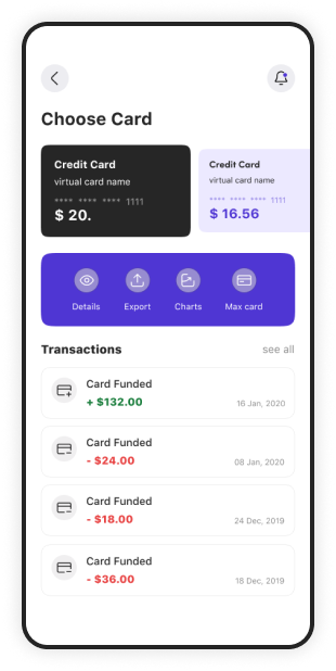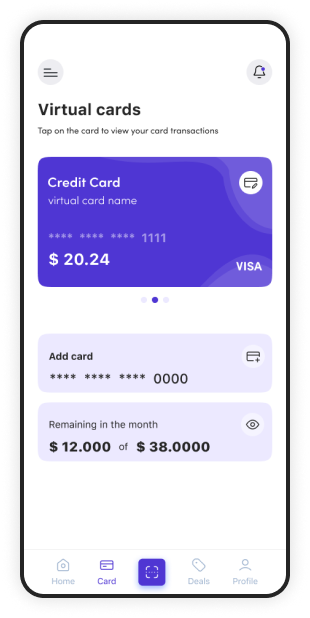 Utilize a virtual card for wallet-based payments, providing easy card transactions.
