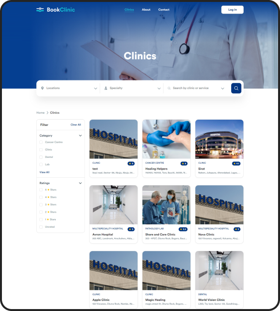 Users can access an extensive clinic directory, each with detailed profiles. These profiles include vital information such as clinic locations, offered services, contact details, user reviews, and ratings.