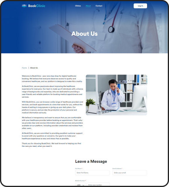 Our client’s goal was to establish a platform that simplifies the process of booking an appointment at clinics. This platform would enable patients to schedule appointments without any paperwork-related complications. Additionally, it would empower clinics to manage their staff efficiently and streamline the booking process. Our client aimed to create an all-inclusive platform that caters to every aspect of appointment booking.