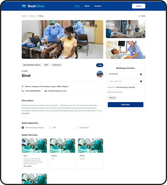 Clinics can maintain detailed profiles, showcasing their specialties and staff credentials.