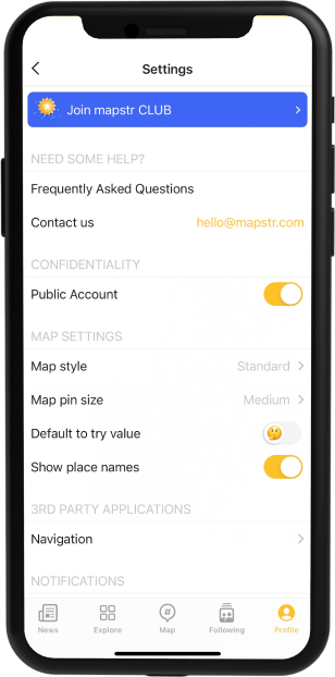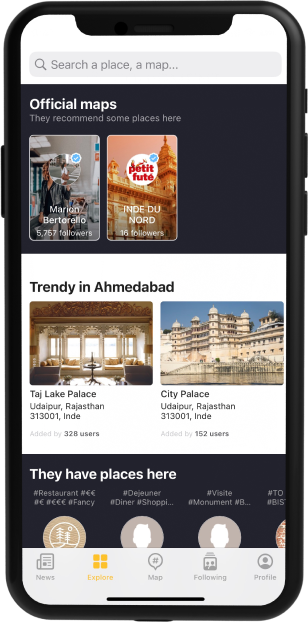 The app offers customizable maps where users can create their private maps and add places.