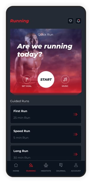The client wanted to develop a unique and extensive mobile app that kept running as its core function. To help people stay healthy and fit, the client wanted to develop a mobile app that encourages people to run and meditate for physical and mental health.